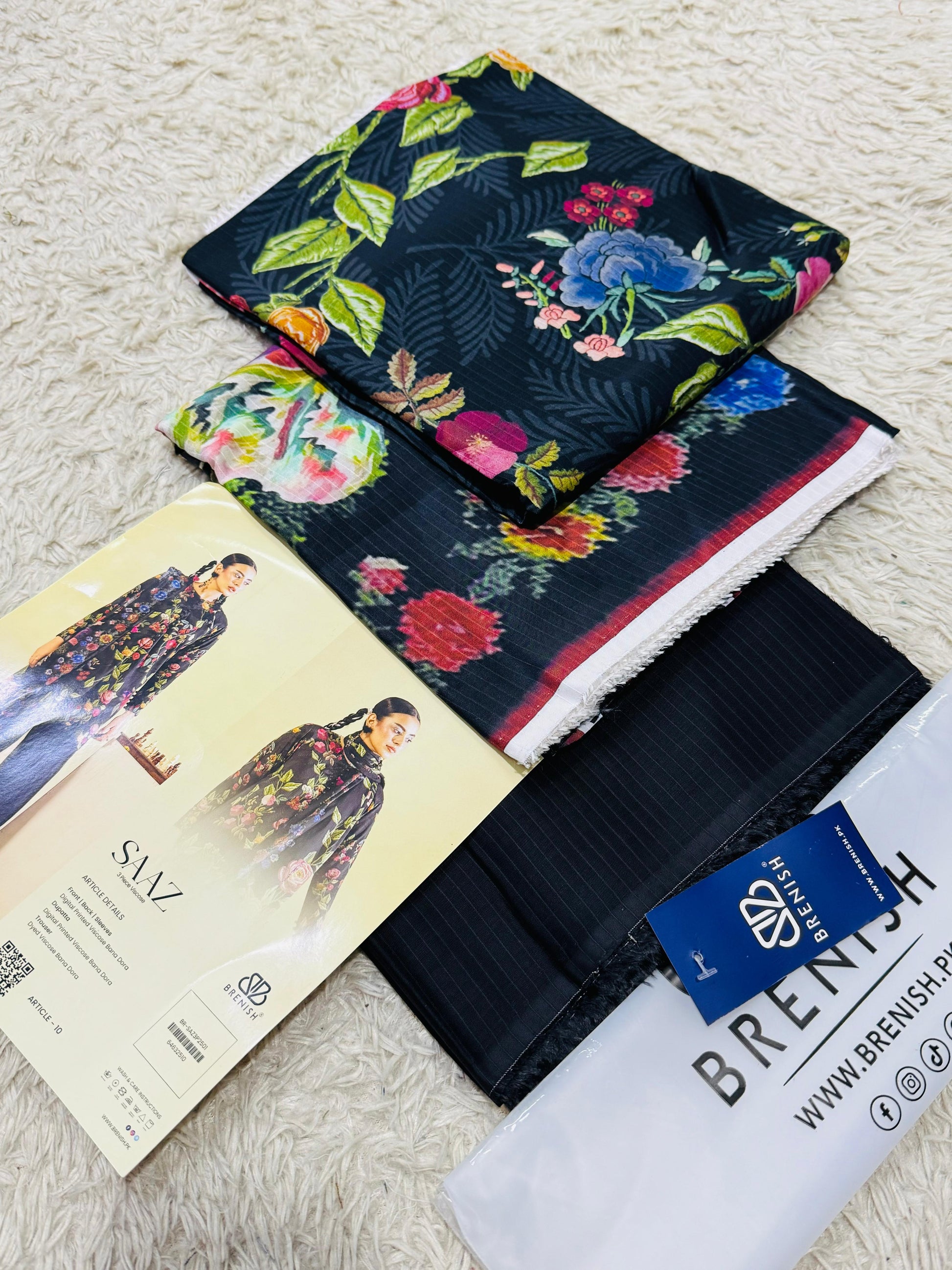 This 3-piece unstitched suit is crafted with premium viscose bana dora fabric, offering a silky soft texture, graceful fall, and long-lasting quality that defines true sophistication.